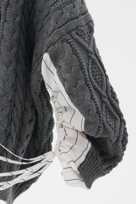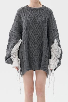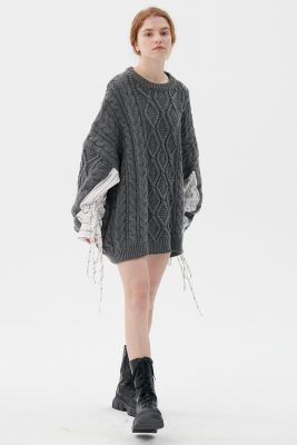 - Featuring a spliced striped shirt sleeves design, a ribbed knit material all over, an deliberately oversized fit silhouette, and pull on style